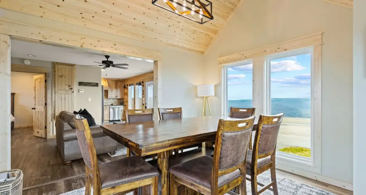 Welcome to Valley View Retreat! This home is a new build, a fully furnished cabin that sits on the rim of the beautiful Arkansas Grand Canyon Valley and has stunning views. Enjoy a beautiful place for a romantic getaway or family vacation, relax and enjoy the beautiful Ozark mountains! Newly remodeled to add more space and a hot tub to relax after a day of hiking! The main floor has a kitchen/ living area, new beautiful dining room, bathroom and bedroom with queen bed. There is also a sofa bed in the living area. The second floor has a second living area as well as a large table and chairs for dining, game playing etc. There is also a bedroom with a queen bed and a bathroom on this floor. There is a sofa bed in the sitting area. The loft area has a full sized mattress in an adorable little nook as well as a small sitting area. There is a washer and dryer in the house available for the guests use. We provide laundry detergent, dryer sheets, dishwashing soap and dishwasher detergent. We also provide body wash, shampoo and conditioner in the bathrooms. The kitchen is fully stocked for all your cooking needs. There is a propane grill (propane provided) on the deck along with some chairs for relaxing. There is a wood firepit in the backyard. New deck off the dining room with a new hot tub to relax and enjoy the view after a long day of exploring! Guests have access to the entire house. We do not live on site but you are welcome to reach out at any time by phone call, text or email. This rental is beside highway 7 and in a peaceful neighborhood.